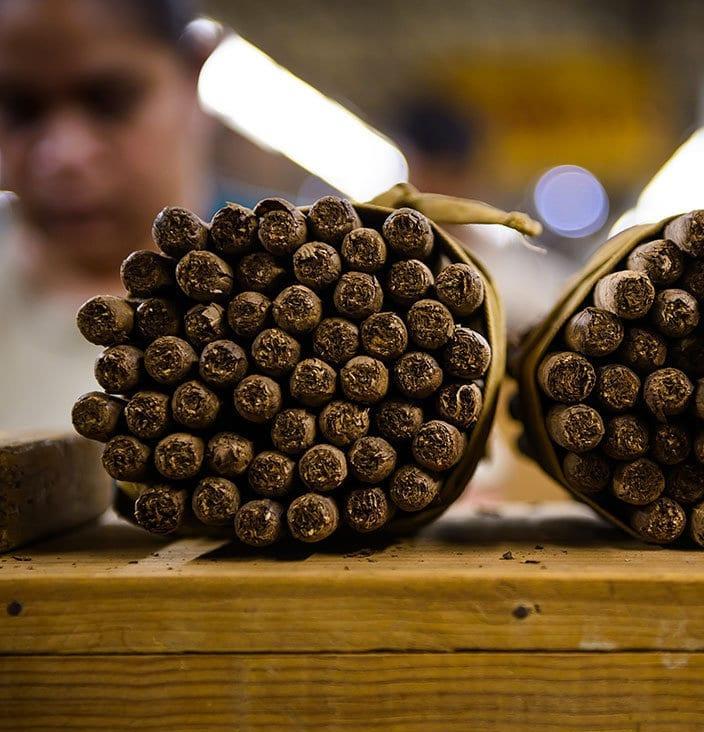 Usamos muchos estilos y gradosdiferentesdehoja,utilizandotabacosdemuchaspartesdelmundoymuchosgradosdecadaestilo.Desdehojas base como Virginia, Burley y Black Cavendish hasta hojas exóticas y raras como Black Sea Sokhoum, Perique de St. James puro de 31 granjas o Criollo DominicanoAgrade,nuestroportafolio