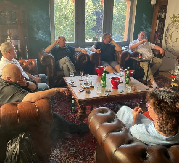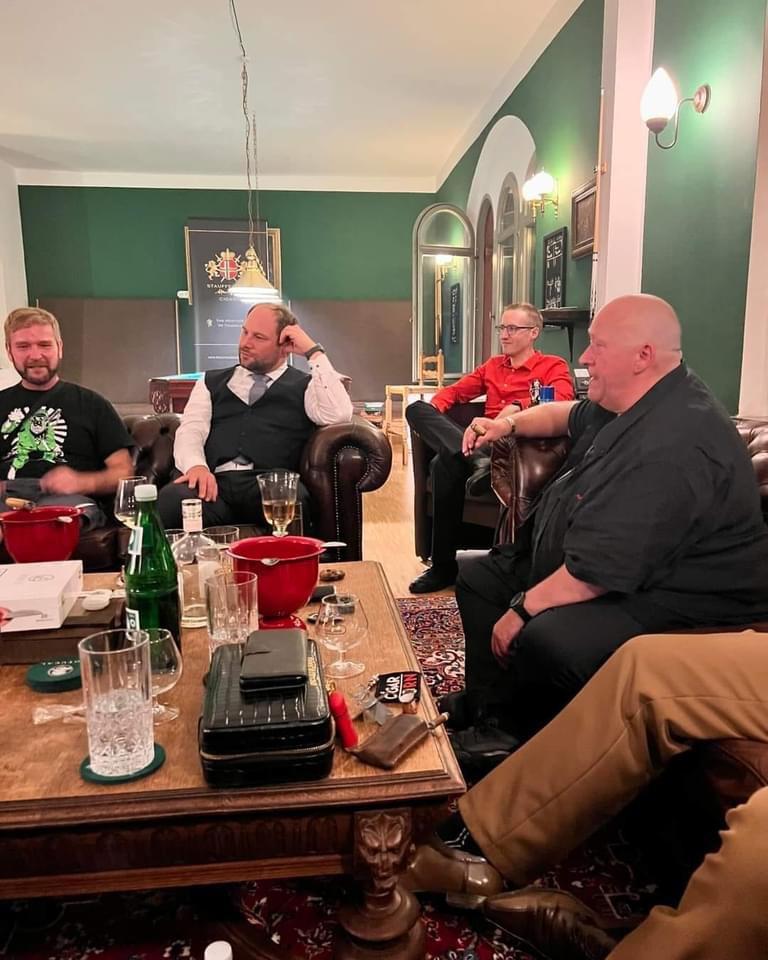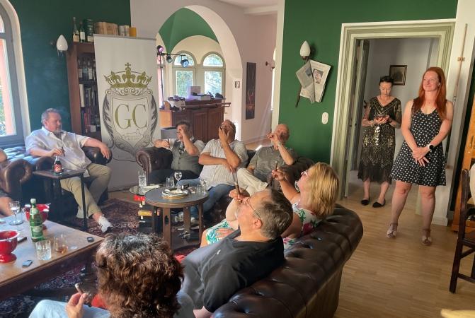 lGCGentlemen'sClube.V.fue fundado el 12 de junio de 2021 en Eisenach por Björn Godehardt y KevinClemen,quienestambiénsonlos presidentesdelclub.Esunaasociación de personas que se inspiran en las estructurasycostumbresdealgunosantiguos clubes de caballeros británicos. Sin embargo, en esta versión moderna también se permite la participación de damas.Elobjetivoprincipaleracrearun lugar de encuentro, pero también de tranquilidadydisfrute.Elviernesporla noche, a las 20:00 horas, comenzó de manera muy relajada. El plan era reunirnos, conocernos y disfrutar. Para nuestra sorpresa, muchos de los participantes viajaron desde lejos HabíaaficionadosalcigarrodeLuxemburgo,Hamburgo,Magdeburgo,Wiesbaden, Wurzburgo y, por supuesto, Eisenach. El ambiente fue excelente desdeelprincipio,yaqueserepartieron puros Leonel White patrocinados por PaulBuggeCigars.René"King"Kaika trajo dos whiskies muy raros que presentó personalmente. Y como no solo de whisky vive el hombre, se abrieron las primeras botellas de la bodega Hammel&CiadeKirchheimenelPalatinado.ChristophHammelesunnombre conocido en el mundo del vino, especialmentedesdequerevitalizóelLieb-