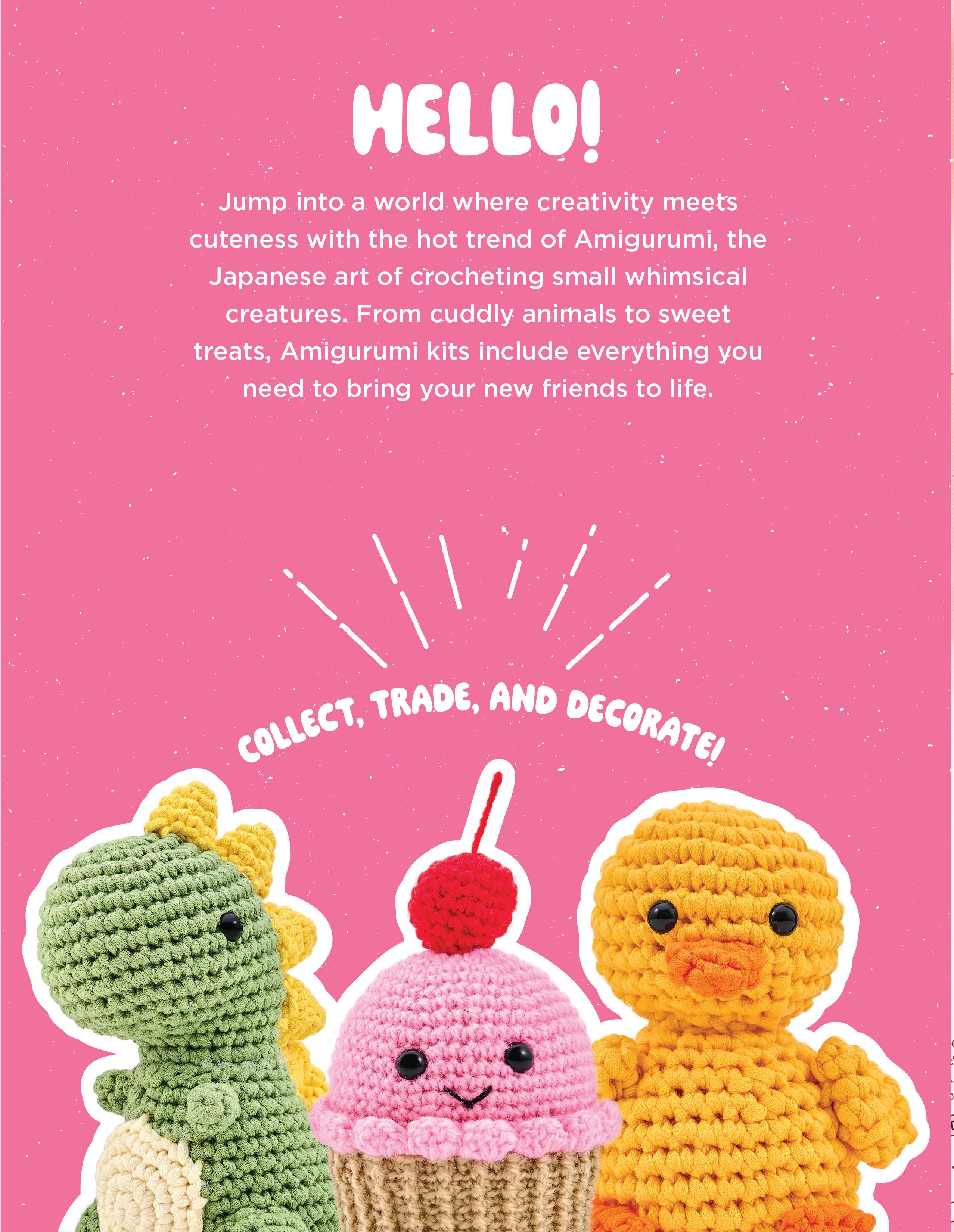 Jump into a world where creativity meets cuteness with the hot trend of Amigurumi, the Japanese art of crocheting small whimsical creatures. From cuddly animals to sweet treats, Amigurumi kits include everything you need to bring your new friends to life.