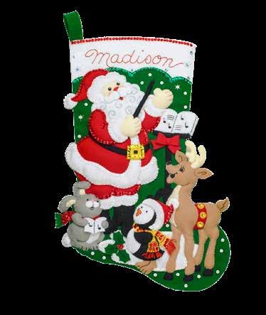 89586E Snowy Retreat Ships February 2023 89582E The Purr-fect Nap 89587E Light Up the Holidays Ships February 2023 89584E Let it Snow Coordinates with Ornaments 89633E and Door Stop 89632E 89588E Holiday Glitz Coordinates with Ornaments 89637E Ships February 2023 89585E Fireplace Folly Ships February 2023 www.plaidonline.com/bucilla 10 Stockings 18 in felt appliqué