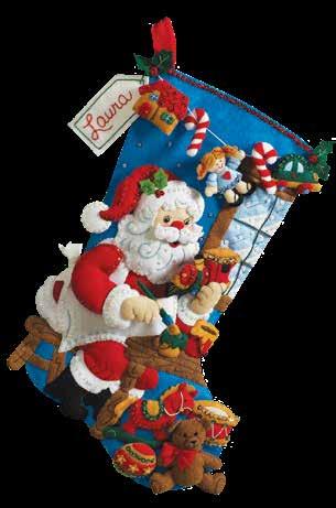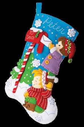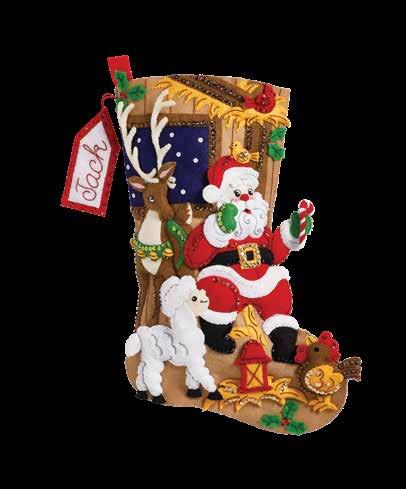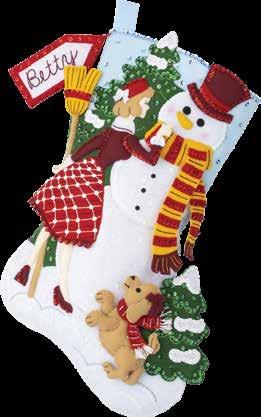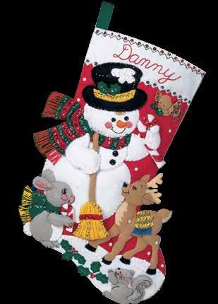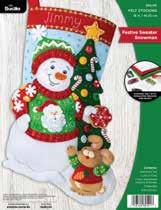 89536E Sleigh Ride with Santa 89535E Date with a Snowman 89542E Let There Be Peace 89541E Festive Sweater Snowman 89486E Holiday Hearth 89543E Jolly Chimney Santa www.plaidonline.com/bucilla 6 Stockings 18 in felt appliqué