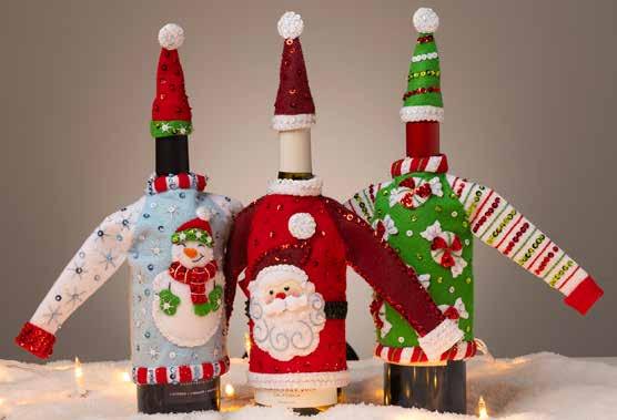 89521E Holiday Sweaters Set of 3 Bottle Covers Approx. 15 in x 8 in (38.1 cm x 20.3 cm) 89573E Jolly Santa Pillow Approx. 13.5 in x 14 in (34.2 cm x 35.5 cm) 86983E Elegant Poinsettia Pillow Approx. 10 in x 10 in (25.4 cm x 25.4 cm) consumers: 800-842-4197 wholesalers: 800-842-4196 57 Home Decor felt appliqué
