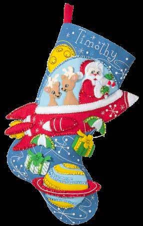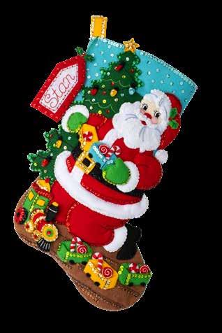 89557E Last Minute Gifts Coordinates with Ornaments 89571E 89558E Magic in the Air 89560E Santa’s Gifts Galore 89559E Emails to Santa 89562E Merry Christmouse 89552E Jolly Deliveries www.plaidonline.com/bucilla 8 Stockings 18 in felt appliqué