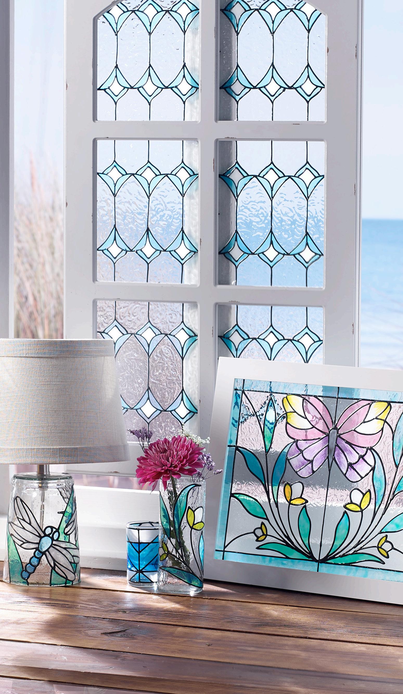 Choose from a variety of vibrant colors to create a realistic stained glass look. From showstopping window designs to gorgeous glass art accents, clings and seasonal decor, Gallery Glass is the affordable way to create the look of real stained glass.
