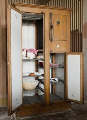 Large houses had dedicated rooms for each type of food: dry goods, dairy, meats and preserves. We often combine these functions into a single larder which can be ventilated to keep produce cool.