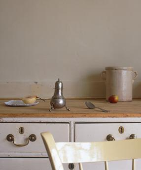 Often, the art of design is knowing when to stop and what to leave out. In this deliberately unrestored room, our potboard dresser complements the existing sideboard and charmingly timeworn interior.