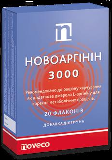 НОВОАРГІНІН ДОБАВКА ДІЄТИЧНА Н ОВОАРГІНІН є безпечним, збалансованим та ефективним комбі нованим засобом для профілактики та лікування захворювань серце во-судинної, гепатобіліарної та репродуктивної систем,