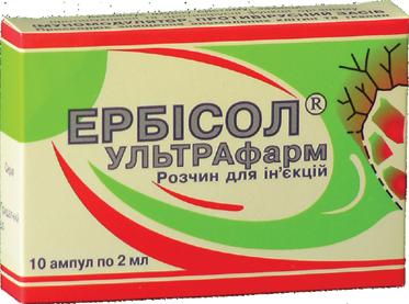Виробник: ТОВ «ЕРБІС», Україна, м. Київ, вул. Р. Окіпної 10-б тел: +38 (044) 569-70-13, 569-70-14, е-mail: erbis@ukr.net, www.erbisol.com.ua 01 Імуномодулятор 03 Адаптоген 04 Репарант 02 Гепатопротектор Активізує еволюційно сформовані контролюючі системи організму, що відповідають за пошук і усунення патологічних змін. Прискорює відновлення пошкоджених і знищення аномальних клітин та тканин. ЕРБІСОЛ® розчин для ін’єкцій. Р. п. No UA/9178/01/01 від 24.09.2014. Склад: діючі речовини: комплекс природних небілкових низь комолекулярних органiчних сполук негормонального походження, отриманих із тваринної ембріональної тканини, 1 мл препарату містить олігопептиди та глікопептиди (загалом 0,07 - 1,0 мг), нуклеотиди, амін окислоти. допоміжна речовина: розчин 0,9 % натрію хлориду ізотонічного. Показання. Ербісол використовується в комплексній терапії: - гастроентерологія: гепатити різної етіології (включаючи вірусні, токсичні та медикаментозні гепатити, спричинені застосуванням антибіотиків, інтерферонів, хіміопрепаратів та інших сильнодіючих лікарських препаратів, що спричиняють побічні ефекти), реактивні гепатити, стеатогепатози, цироз печінки, виразкова хвороба шлунка та дванадцяти палої кишки, ерозивні гастро дуоденіти, неспецифічний виразковий коліт; - токсикологія: Ербісол® підсилює дезінтоксикаційні функції печінки; - ендокриноло гія: цукровий діабет, ауто імунний тиреоїдит; - терапія: неспецифічні захворювання легенів (пневмонiя, хронiчнi бронхiти), туберкульоз легенів, метаболічні дистрофії, синдром хронічної втоми, ангіопатії, для покращання мікро циркуляції, нормалізації тонусу та кровонаповнення судин. Ербісол® застосовується у комплексному лікуванні осіб, які постраждали від наслідкiв радіаційного впливу та екологiчного забруднення, препарат має виражені адаптивно-коригуючі властивості при поєднанні вищевказаних патологій, підвищує компенсаторні та захистні функції організму; - алергологія: алергічні та ауто імунні захворювання, включаючи бронхіальну астму, атопічний дерматит та атопічний ринокон’юктивіт; - геронтологія: функціональна недостатність пов'язана з віковими порушеннями діяльності печінки, імунної, нервової та серцево-судинної системи. Для підвищення фізичної активності та усунення астенічного синдрому, для підвищення потенції;стоматологія: пародонтит. - хірургія та травматологія: травматичні, після операційні і гнійно-септичні рани, переломи (для прискорення консолідації кісткових уламків), трофічні виразки різної етіології, діабетичні ангіопатії, пролежні; - онкологія: при хірургічному лікуванні для профілактики метастазування та швидкого загоювання ран. При хіміо- та радiо променевій терапії, Ербісол® застосовують в комплексі як препарат супроводу, у якості гепато-; імунопротектора та репаранта, а в реабілітаційному та між курсовому періодах - також як імунокоректор та репарант, для активізації протипухлинного захисту організму. Протипоказання. Індивідуальна непереносимість, підвищена чутливість до будь-якого компонента лікарського засобу. Побічні реакції. Іноді протягом перших 2–5 днів прийому лікарський засіб може спричиняти загострення хронічного запального процесу, що у більшості випадків є стадією лікувального процесу. Можливі реакції гіперчутливості, включаючи висипи, відчуття свербежу, підвищення артеріального тиску і темпер