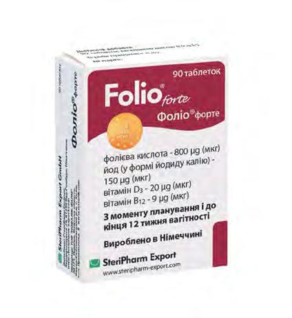 Який препарат обрати? Оптимальний препарат для надійної профілактики захворювань матері та дитини, пов’язаних з дефіцитом мікронутрієнтів, повинен містити всі необхідні мікроелементи у рекомендованих дозах і мати високу якість і безпеку, перевірену часом. Продуктом високої німецької якості від компанії, яка вже 40 років спеціалізується на препаратах фолієвої кислоти, є препарат ФОЛІО®, виробництва «Стеріфарм», Німеччина. Лінійка включає 3 продукти: ФОЛІО®, ФОЛІО® + D3 та ФОЛІО® ФОРТЕ. Кожен із препаратів має оптимальну комбінацію мікронутрієнтів для жінок, що планують вагітність, вагітних та жінок у період лактації. При цьому ФОЛІО® (фолієва кислота – 400 мкг, йод – 200 мкг), ФОЛІО® + D3 (фолієва кислота 400 мкг, йод 200 мкг, вітамін D3 –10 мкг) підходять практично всім жінкам фертильного віку, які живуть статевим життям, адже в багатьох випадках вагітність є незапланованою. Ці ж продукти допоможуть забезпечити жінку і дитину необхідними мікронутрієнтами та в період грудного вигодовування. У разі ретельноного планування вагітності, більш доцільним є прийом ФОЛІО® ФОРТЕ, який містить 800 мкг фолієвої кислоти, 150 мкг йоду, 20 мкг вітаміну D, і навіть 9 мг вітаміну В12. Важливо зазначити, що дефіцит вітаміну В12 у вагітних жінок може призвести до таких несприятливих наслідків, як розвиток дефектів нервової трубки плода, затримка внутрішньоутробного розвитку, а також підвищення ризику передчасних пологів. При цьому норма споживання вітаміну В12 під час вагітності зростає до 5-10 мкг на добу. Таким чином, прийом ФОЛІО® ФОРТЕ особливо актуальний аж до 12 тижнів вагітності, після чого можна перейти на регулярний прийом ФОЛІО® або ФОЛІО® + D3. Безперечним підтвердженням