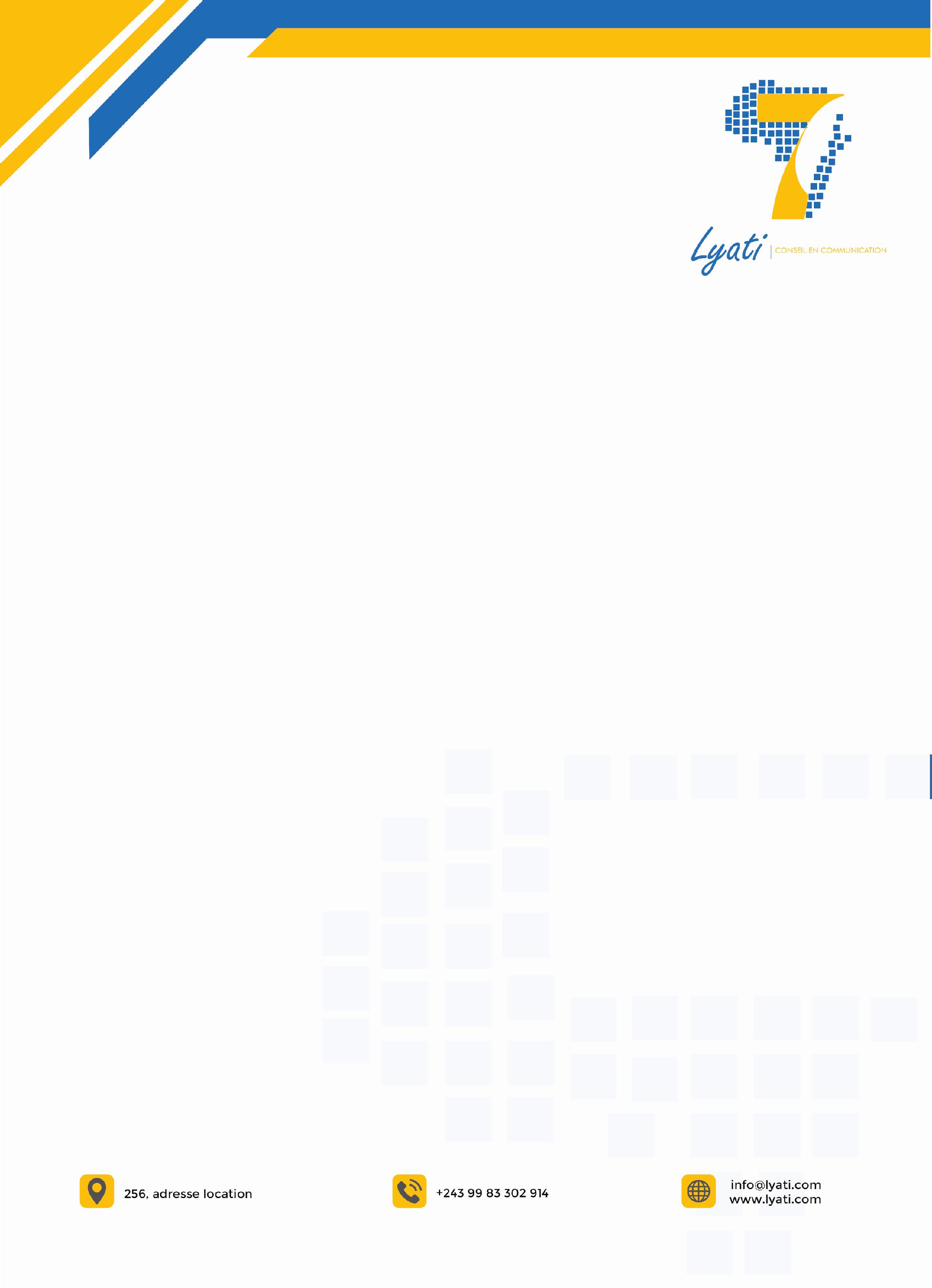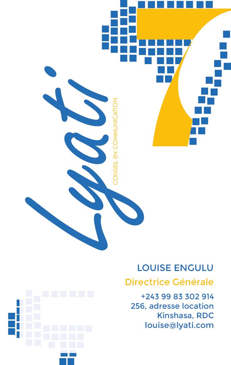 www.lyati.com LYATI SARL 256, 1st AVE, Kinshasa RDC P.+243 99 83 302 914 W. www.lyati.com Lyati CONSEIL EN COMMUNICATION LYATI SARL 256, 1st AVE, Kinshasa - RDC P.+243 99 83 302 914 Lyati CONSEIL EN COMMUNICATION WWW.LYATI.COM Software Used Branding