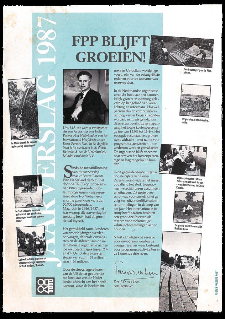 Het is 8 maart 1975. In Amsterdam opent een nieuw goed doel haar deuren: Foster Parents Plan. Het nieuwe fondsenwervende kantoor is onderdeel van een op dat moment kleine, internationale organisatie die kinderen in kwetsbare posities ondersteunt. Ook in Nederland kunnen mensen zich vanaf nu inzetten voor de rechten van kinderen door een kind te sponsoren. Uniek was, en is, dat kinderen altijd centraal