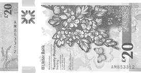 Emitido por el banco Ulter Bank, este modelo está hecho de polímero y tiene un diseño vertical. En la parte frontal se aprecian las anguilas marinas de los sargazos, la silueta del lago Neagh, una mariposa, la flor de Hawthorne y el logotipo de RBS Group en color magenta. En la parte trasera se ven músicos callejeros y personas aplaudiendo. 5
