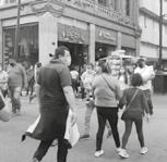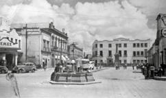 Para 1945 todavía no se construía el Eje Vial, por lo que la Calle Constitución era angosta, como el resto de las calles del Centro Histórico. En la imagen la calle Constitución vista desde Manuel José Othón hacia el norte.