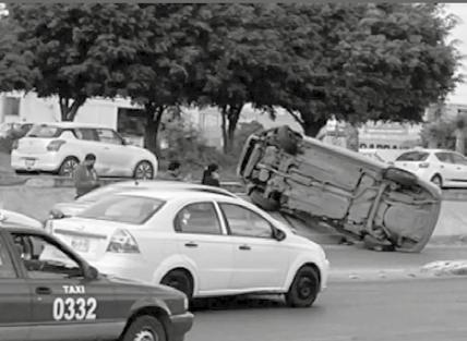 Al parecer el vehículorojo en su intento de pasar del carril lateral a la intersección para subir los puentes perdió el control y terminó su carrera volcado sobre su costado izquierdo.