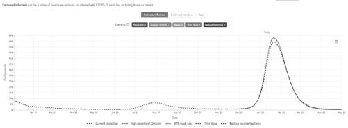 El Instituto de Métricas y Evaluación de la Salud de la Universidad de Washington proyectó que, en el peor de los escenarios, para el 16 de febrero de 2022, San Luis Potosí podría alcanzar hasta 13.81 muertes diarias por COVID-19, en medio de la cuarta ola de contagios después del periodo vacacional de fin de año y ante la amenaza de la variante Ómicron.