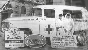Era la primera mitad del Siglo XX cuando las empresas se involucraban en el apoyo a los servicios de emergencia, como la Cruz Roja, por lo que la ambulancia que aparece en la imagen fue donada por una embotelladora.
