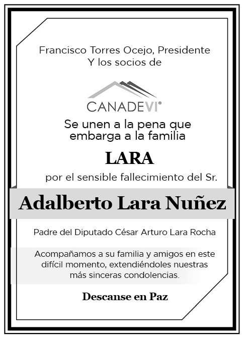 El sindicalismo potosino perdió este domingo a uno de sus líderes e iconos local y nacional de la lucha por los derechos de los trabajadores, don Adalberto Lara Núñez, quien falleció a los 88 años, en el seno de su familia.