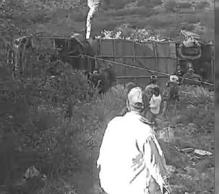Intensa movilización policiaca y de servicios de emergencia se llevó a cabo tras registrarse la volcadura de un autobús de pasajeros en la zona conocida como Las Cuestas, en las inmediaciones de la comunidad de Escalerillas.