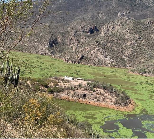 Lo que más llamó la atención fue la cantidad de lirio acuático que invade el vaso de captación de la presa la cual, de acuerdo con información de la Conagua, tiene una capacidad de 50 hectómetros cúbicos de agua y se encuentra actualmente al 80 por ciento de su capacidad.
