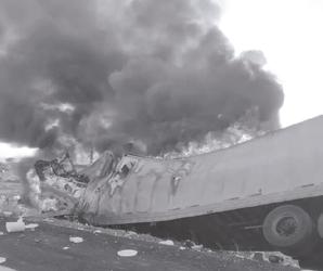 Nuevamente se registró un fatal accidente en el que está involucrado un vehículo de quinta rueda, de acuerdo a información proporcionada un tráiler que transportaba polietileno invadió el carril contrario y chocó en un costado con otro tráiler que transportba fresas congeladas.