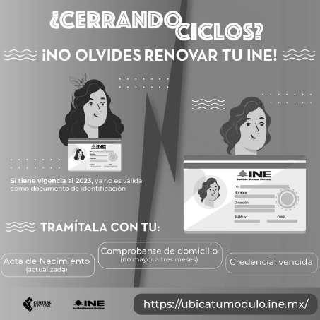 gencia de este documento, que además se reconoce como identificación oficial en todo el país. El INE recomienda a los ciudadanos mantener actualizada su documentación y renovar su credencial para votar antes de que termine el año. Recuerda que para realizar este trámite debes acudir a tu cita con tu acta de nacimiento actualizada; un comprobante de domicilio no mayor a tres meses y la credencial vencida.