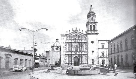 Este fue uno de los atrios del Templo del Carmen, la plazoleta con escalones que luego fue sustituida por el polígono arquitectónico que hoy adorna la capital potosina.