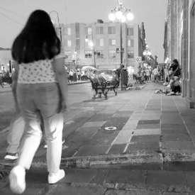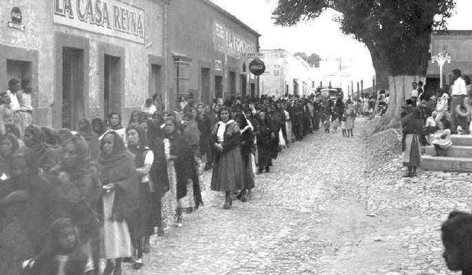 Una de las bellas tradiciones de Charcas son sus peregrinaciones. Esta vez pasando junto al Jardín Hidalgo, frente a lo que fue la Casa Reyna y después Casa del Obrero. Al fondo se ve la Calle 16 de Septiembre que originalmente fue la Calle del Ojo de Agua y se alcanza apreciar la casa en donde según la historia se alojó Don Miguel Hidalgo y Costilla a su paso por esta ciudad.