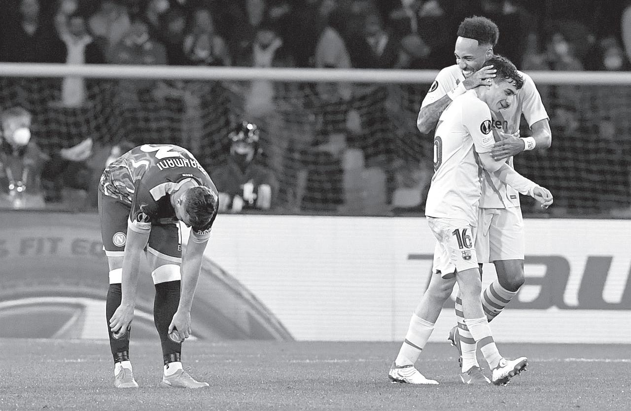 Con el paso de los minutos, el control blaugrana se haría evidente, culminando la superioridad frente al Nápoles con un gran gol de Aubameyang a pase de Adama Traoré, en el que Frenkie De Jong, con una dejada, engañó a la zaga partenopea. El 1-4 en el marcador daría calma al Barça, que veía certificado su presencia a los octavos de final de Europa League, con lo que significa a nivel económico y de proyecto deportivo.