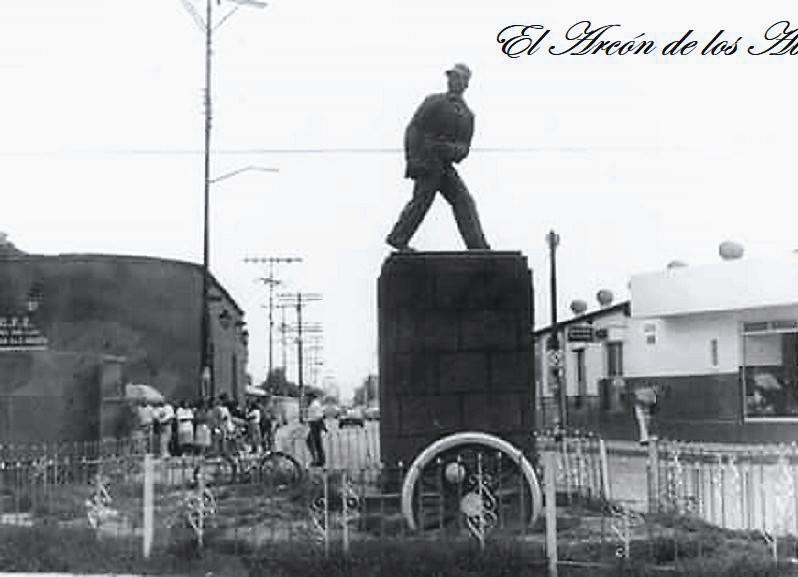 La mejor prueba de la importancia que tenía el ferrocarril en San Luis Potosí era la Glorieta del Montecillo, en la que se encontraba el Monumento al Héroe Ferrocarrilero, Jesús García Corona. Esta escultura hoy se encuentra en el Museo del Ferrocarril, donde luce menos pero está a salvo de los vándalos que se la estaban llevando por piezas. La imagen fue captada en 1978.