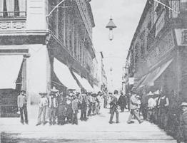 Sobre la Calle Hidalgo, en la esquina con Los Bravo, se alza majestuosa la Casa Solana, con esa extraña belleza que le confiere la mezcla de estilos arquitectónicos y que no desentona con el resto de los edificios alrededor de la Plaza de Armas. La imagen corresponde a la última década del Siglo XIX..