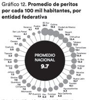 Sin embargo en lo que se refiere a peritos por cada 100 mil habitantes, México Evalúa encontró que San Luis Potosí ocupa la posición número 30 de entre con solo 4.1 peritos por cada 100 mil habitantes.