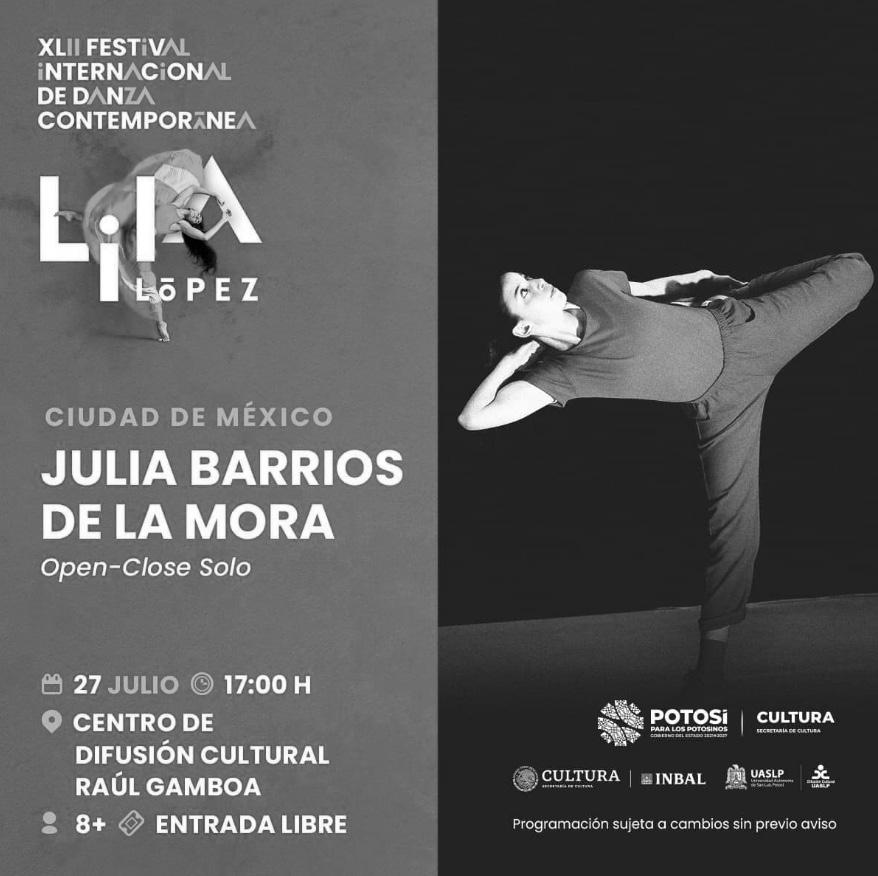 El primer programa que se presentará inicia a las 17:00 horas en el Centro Raúl Gamboa, donde se presentará Julia Barrios de la Mora y su espectáculo Open-Close Solo, que tendrá entrada libre para los mayores de 8 años.
