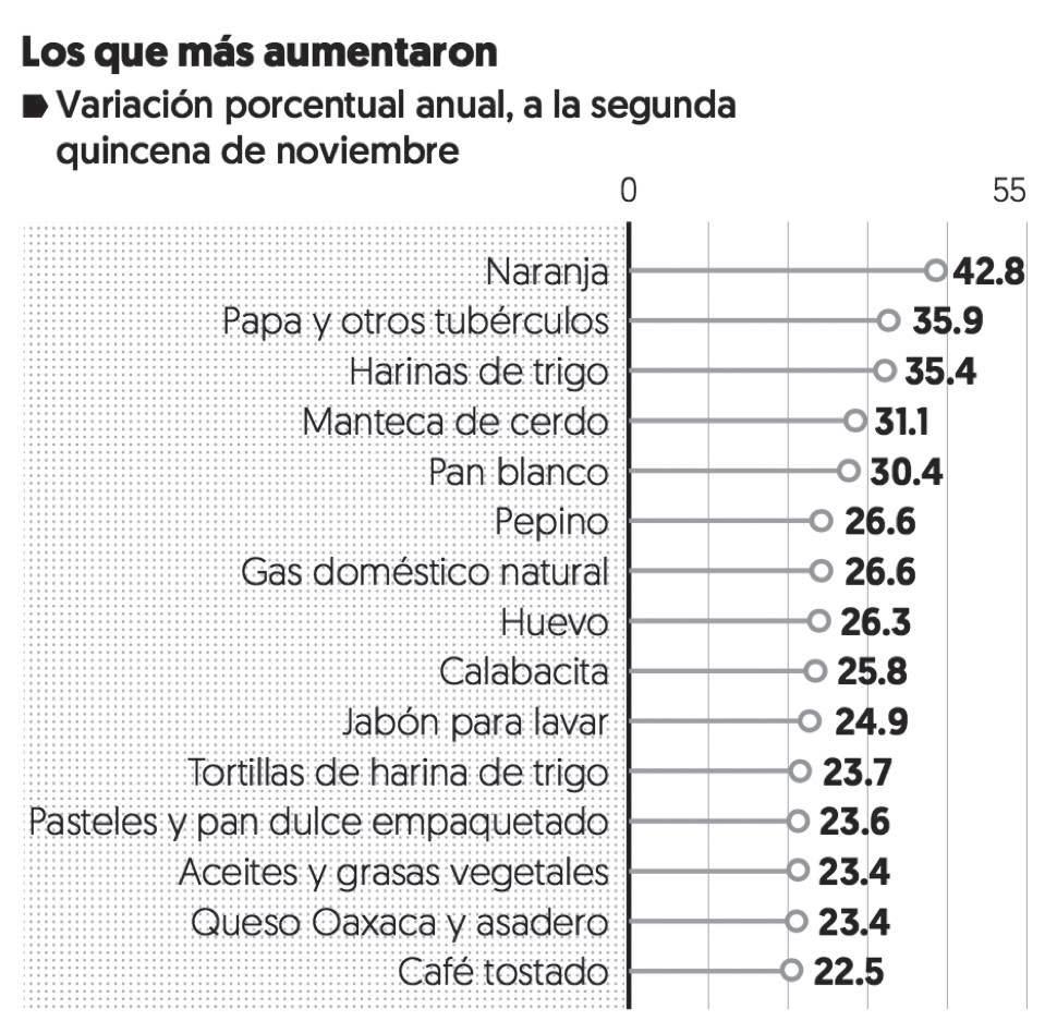 Dentro de la lista de productos que más influ yeron en la inflación general se encuentran los pertenecientes a ambos índices -subyacente y no subyacente- siendo las tarifas eléctricas las de mayor porcentaje. El costo de la tarifa eléctrica se disparó en la primera quincena de