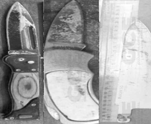 una navaja de casi 27 cm; sobre la colonia Rural Atlas, a un hombre de 40 años lo detuvieron con una navaja de 18 cm; en la misma zona se detuvo a un sujeto de 33 años, quien deambulaba con una hoja de un cuchillo.