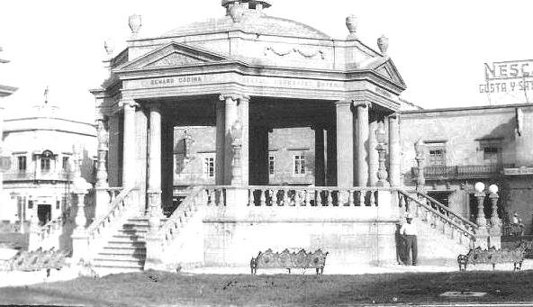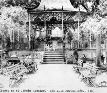 El kiosco de origen belga, único en toda América, lo mandaron a hacer de común acuerdo el militar Carlos Diez Gutiérrez con el General Porfirio Díaz Morí, junto con los mercados Porfirio Díaz-Hidalgo y Colón-Tangamanga. El kiosco con diseños de hierro fundido, decoraciones florales y motivos vegetales fue colocado en la Plaza de Armas e inaugurado el 21 de abril de 1890. Este kiosco fue trasladado en 1948 a la plaza principal de Tampamolón Corona.