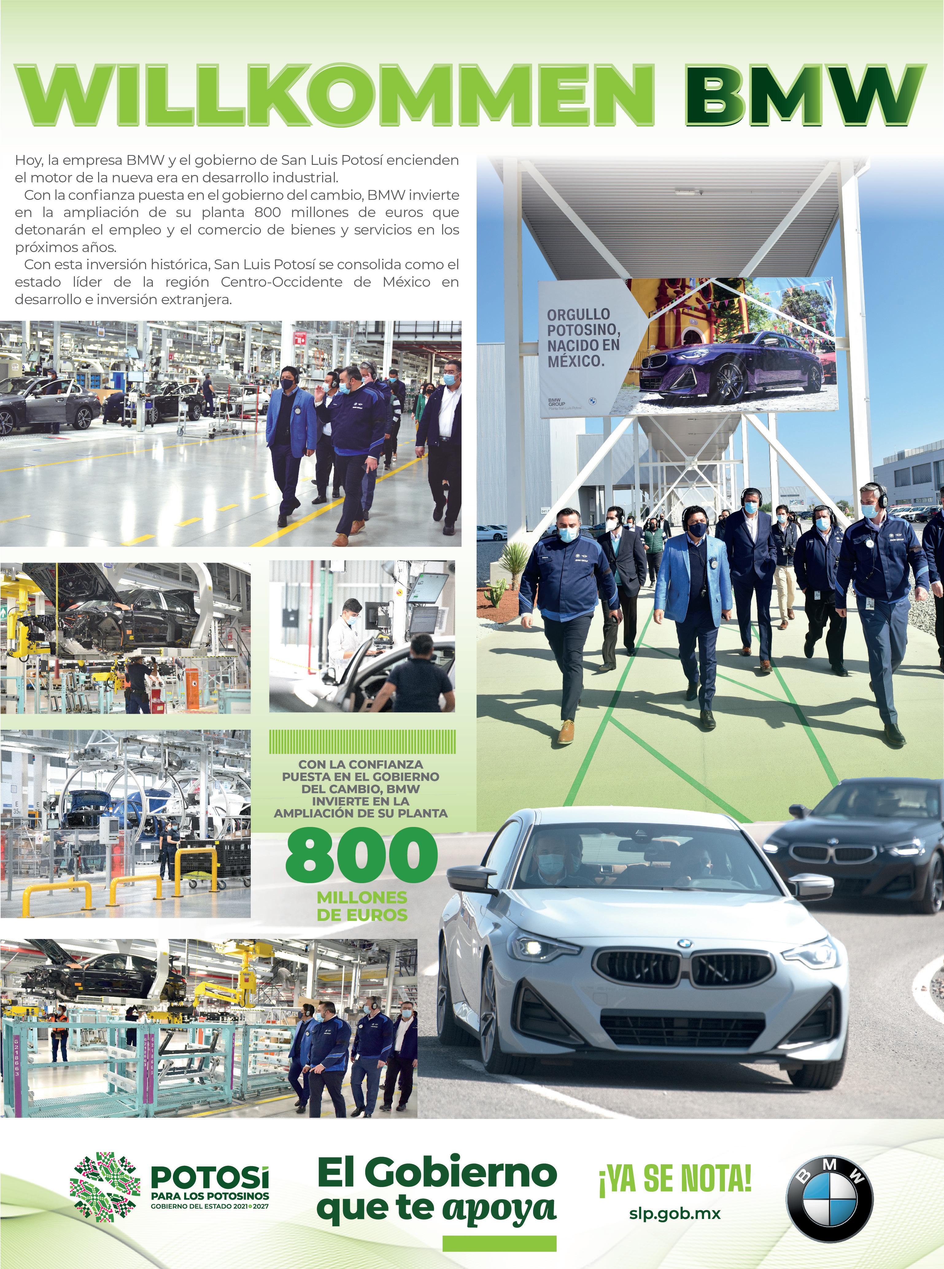 Este viernes con la presencia del Presidente de la República, Andrés Manuel López Obrador, la firma BMW anunciará la nueva inversión para la expansión de su complejo de Villa de Reyes con la instalación de una ensambladora de vehículos eléctricos.