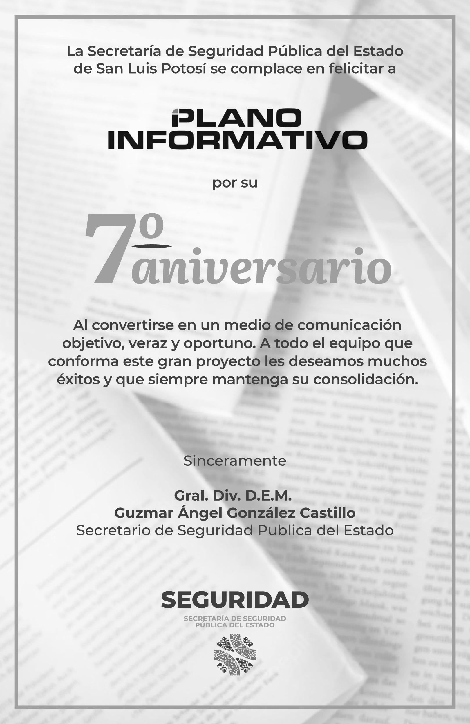 Plano Informativo - Diario Net SA de CV. Publicación diaria. Editor responsable: Francisco Javier Rosales Hernández. Número de Certificado de Reserva de Derechos al Uso Exclusivo otorgado por el Instituto Nacional de Derechos de Autor No. 04-2015-120111395600-101. Número de Certificado de Licitud de Título y Contenido: 16645. Impreso por: Organización Editorial Mexicana, en Universidad 565, colonia Centro, San Luis Potosí, SLP.CP 78000. Distribuidor de la publicación: Grupo Plano Informativo. Domicilio: Julián Carrillo No. 120-A, Colonia del Valle, San Luis Potosí, SLP. CP. 78200. Las opiniones expresadas en este documento son de exclusiva responsabilidad del autor y no representan la opinión de Plano Informativo.