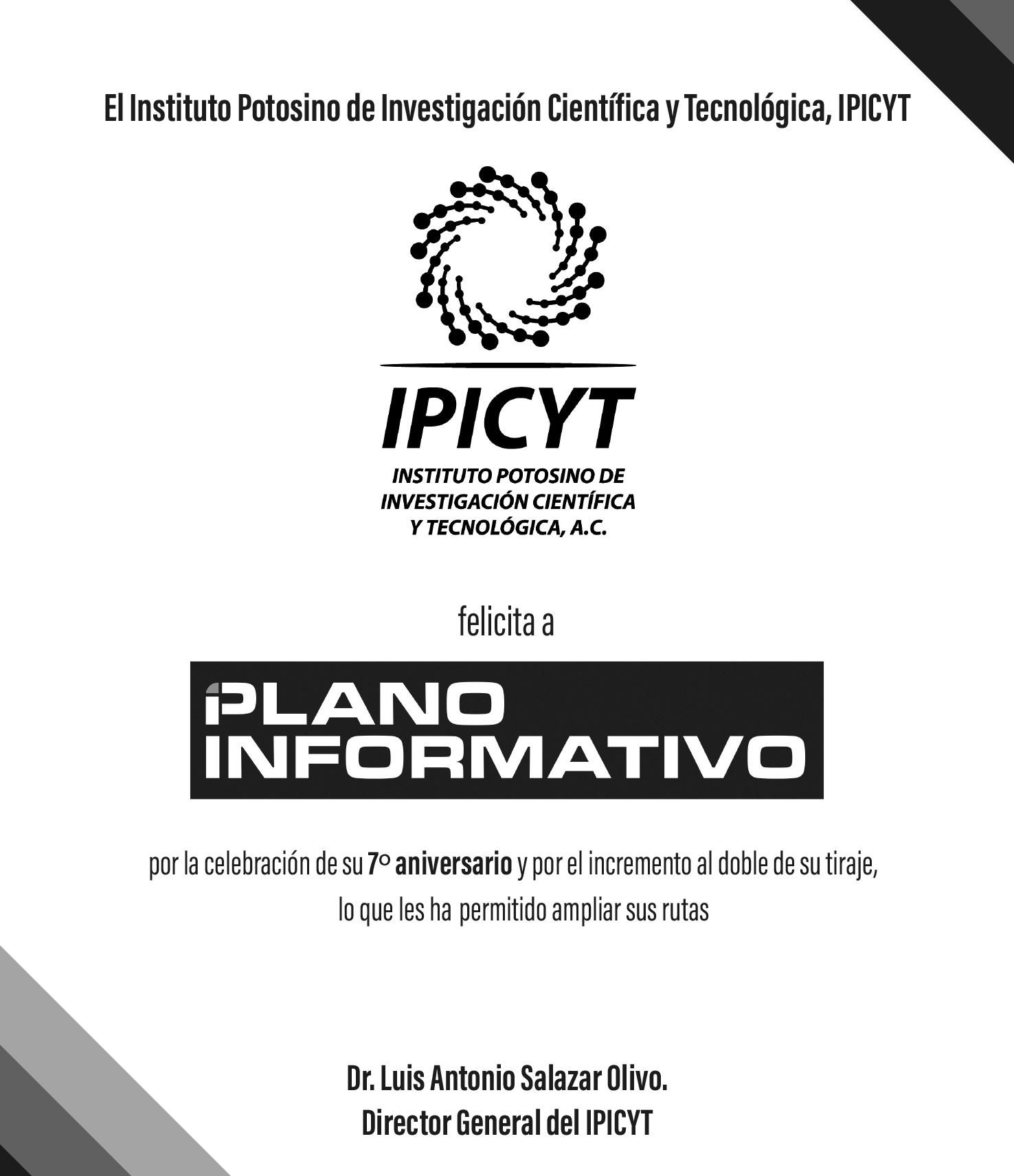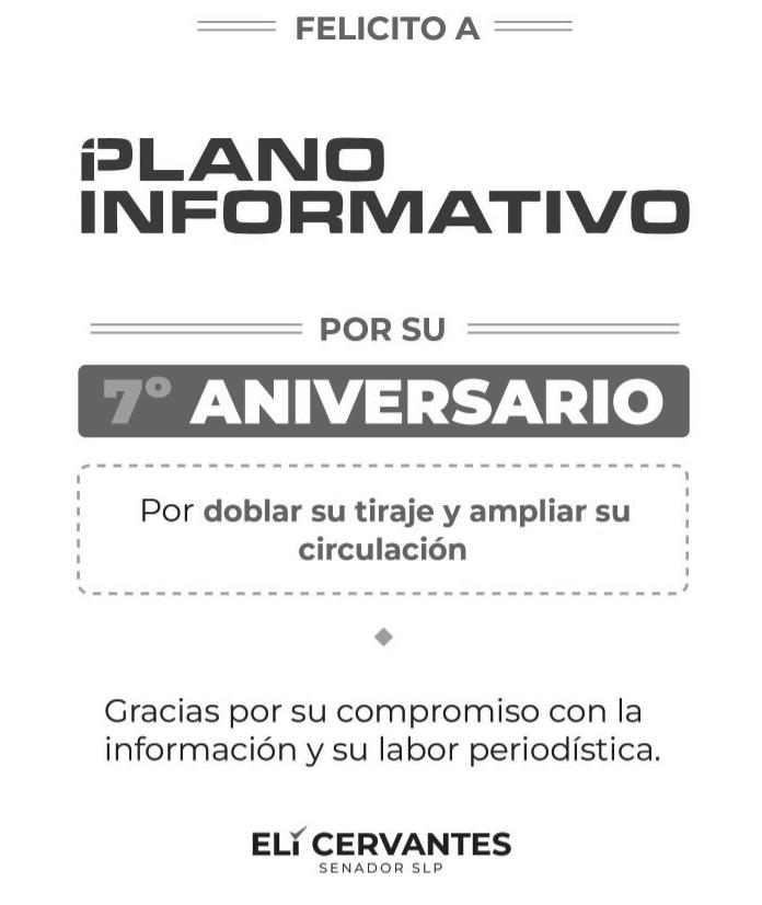 Plano Informativo - Diario Net SA de CV. Publicación diaria. Editor responsable: Francisco Javier Rosales Hernández. Número de Certificado de Reserva de Derechos al Uso Exclusivo otorgado por el Instituto Nacional de Derechos de Autor No. 04-2015-120111395600-101. Número de Certificado de Licitud de Título y Contenido: 16645. Impreso por: Organización Editorial Mexicana, en Universidad 565, colonia Centro, San Luis Potosí, SLP.CP 78000. Distribuidor de la publicación: Grupo Plano Informativo. Domicilio: Julián Carrillo No. 120-A, Colonia del Valle, San Luis Potosí, SLP. CP. 78200. Las opiniones expresadas en este documento son de exclusiva responsabilidad del autor y no representan la opinión de Plano Informativo.