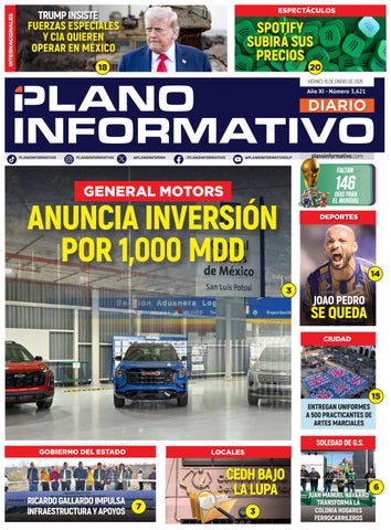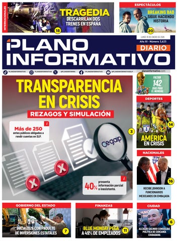Plano Informativo - Diario Net SA de CV. Publicación diaria. Editor responsable: Francisco Javier Rosales Hernández. Número de Certificado de Reserva de Derechos al Uso Exclusivo otorgado por el Instituto Nacional de Derechos de Autor No. 04-2015-120111395600-101. Número de Certificado de Licitud de Título y Contenido: 16645. Impreso por: Organización Editorial Mexicana, en Universidad 565, colonia Centro, San Luis Potosí, SLP.CP 78000. Distribuidor de la publicación: Grupo Plano Informativo. Domicilio: Julián Carrillo No. 120-A, Colonia del Valle, San Luis Potosí, SLP. CP. 78200. Las opiniones expresadas en este documento son de exclusiva responsabilidad del autor y no representan la opinión de Plano Informativo.