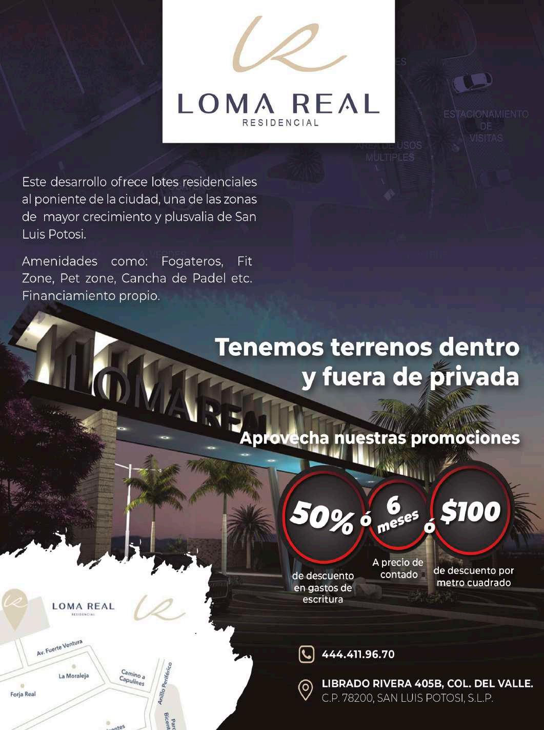 MIÉRCOLES 7 DE DICIEMBRE DE 2022 - PÁGINA 21 planoinformativo.com DESDE $2,499,000 Más de 2,100 metros cuadrados de amenidades, ubicación privilegiada, cercano a todos los servicios y a tan solo 20 minutos de la Zona Industrial a 280 m2 A 50 mts del Club Campestre de Golf Polvillo 440, Morales Campestre 444 14 27 603