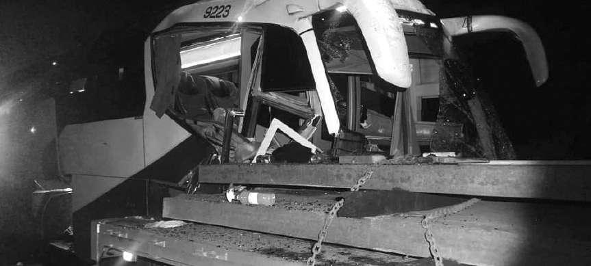 El transporte de pasajeros golpeó por alcance la plataforma de un tráiler