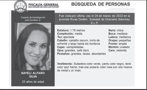 Derivado de la comparativa de los perfiles genéticos de los padres de Nayeli, una joven buscada por las autoridades, y los restos óseos localizados el primero de abril del año 2022, se obtuvo un grado de parentesco de 99.999999%, informó la Fiscalía General del Estado de San Luis Potosí (FGESLP).
