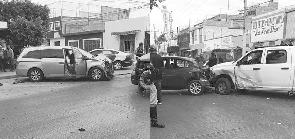 Nacional, chocaron contra una camioneta gris Honda, donde viajaban dos personas que resultaron lesionadas.