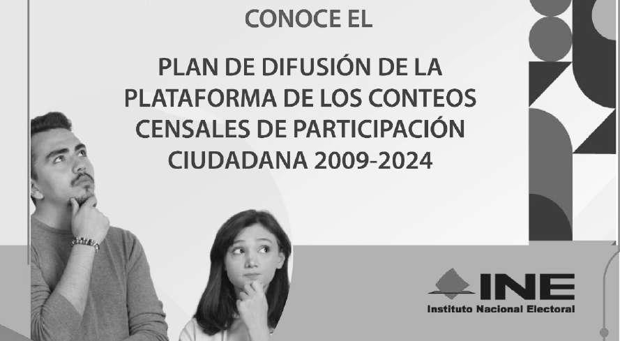 Conoce los Conteos Censales de Participación Ciudadana 2024. El Instituto Nacional Electoral (INE) lanzó la invitación para que toda la población de 18 años y más, conozca el Plan de difusión de la plataforma de los Conteos Censales de Participación Ciudadana 2009–2024.