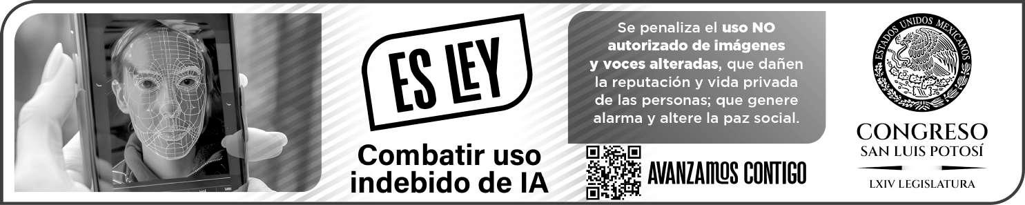 de San Luis Potosi, en Universidad 565, colonia Centro, San Luis Potosí, SLP. CP 78000. Distribuidor de la publicación: Grupo Plano Informativo. Domicilio: Julián Carrillo No. 120-A, Colonia del Valle, San Luis Potosí, SLP. CP. 78200. Domicilio de la publicidad: Julián Carrillo No. 120-A, Colonia del Valle, San Luis Potosí, SLP. CP. 78200. Las opiniones expresadas en este documento son de exclusiva responsabilidad del autor y no representan la opinión de Plano Informativo.