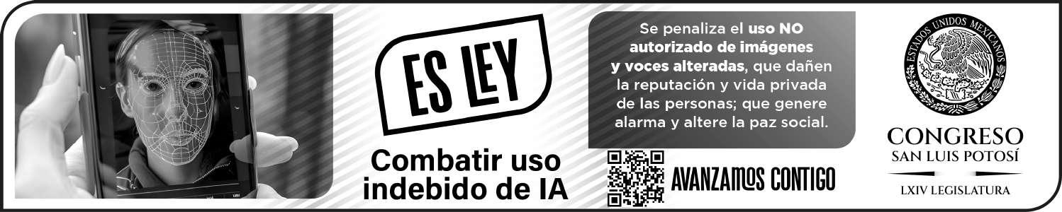 Plano Informativo - Diario Net SA de CV. Publicación diaria. Editor responsable: Francisco Javier Rosales Hernández. Número de Certificado de Reserva de Derechos al Uso Exclusivo otorgado por el Instituto Nacional de Derechos de Autor No. 04-2022-041312533700-101. Número de Certificado de Licitud de Título y Contenido: 16645. Impreso por: CIA. Periodistica del Sol de San Luis Potosi, en Universidad 565, colonia Centro, San Luis Potosí, SLP. CP 78000. Distribuidor de la publicación: Grupo Plano Informativo. Domicilio: Julián Carrillo No. 120-A, Colonia del Valle, San Luis Potosí, SLP. CP. 78200. Domicilio de la publicidad: Julián Carrillo No. 120-A, Colonia del Valle, San Luis Potosí, SLP. CP. 78200. Las opiniones expresadas en este documento son de exclusiva responsabilidad del autor y no representan la opinión de Plano Informativo.