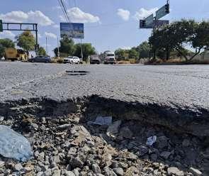 Las laterales de la carretera federal 57, principal acceso a Villa de Pozos y una de las vías con mayor carga vehicular en la Zona Industrial, presentan un deterioro físico “muy avanzado”, generando graves problemas de circulación.