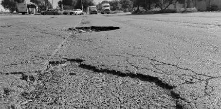 El tramo más dañado es el que abarca las laterales desde el Eje 120 hasta el acceso principal a Villa de Pozos.