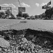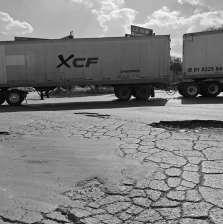 ZONA INDUSTRIAL. Las laterales de la 57 están convertidas en una pista de cráteres: baches de tres metros y 30 cm de profundidad que frenan a todo vehículo. La entrada a Villa de Pozos colapsa diario mientras la UUZI repite el mismo reclamo: la vía principal de la industria se cae a pedazos.