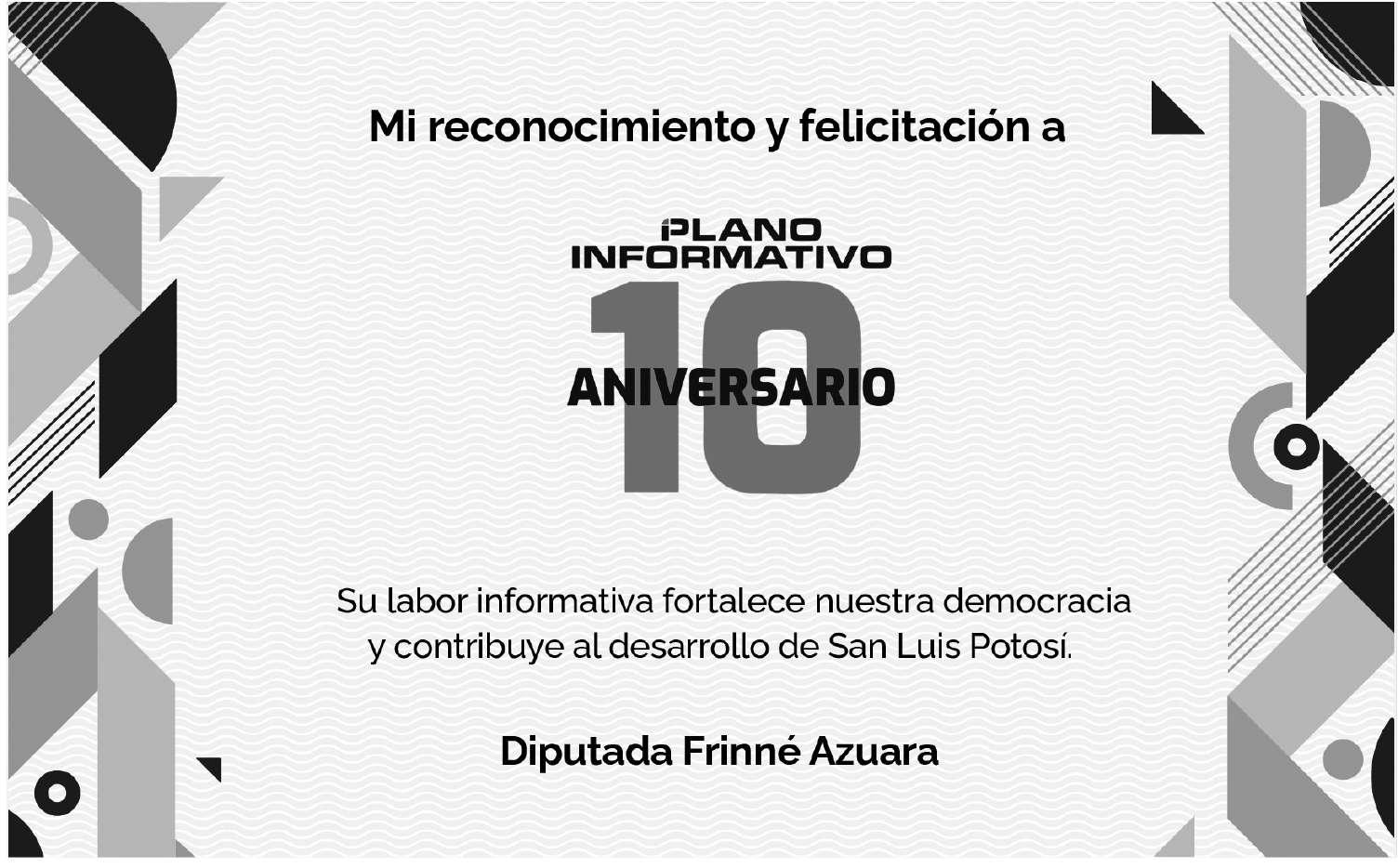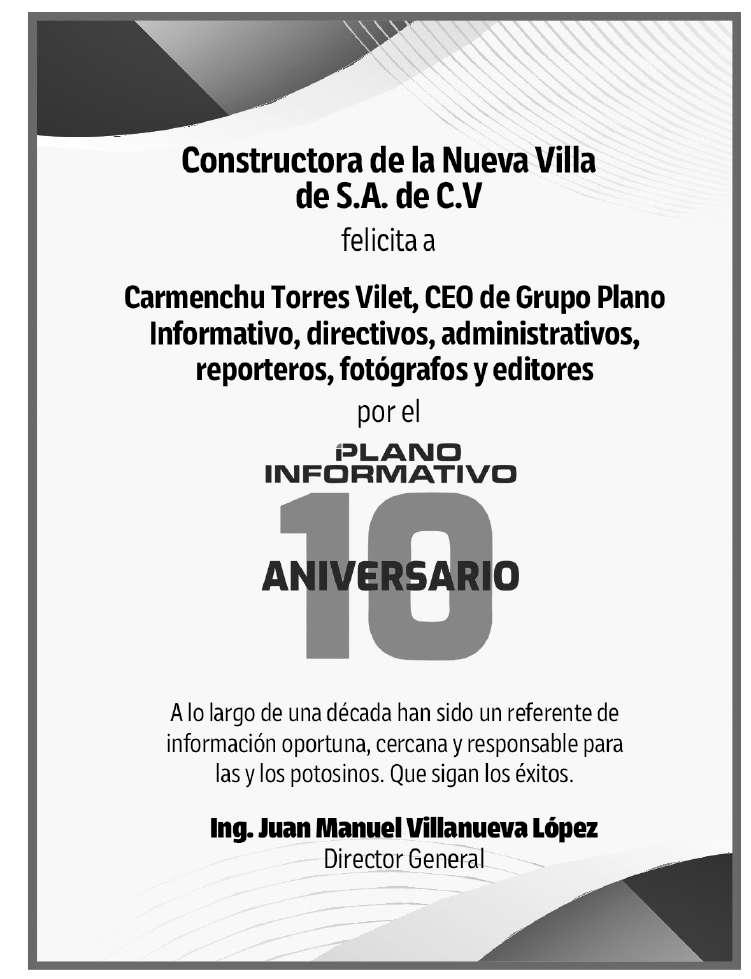 Han transcurrido 3 mil 583 días desde que se publicó el primer número impreso de PLANO INFORMATIVO, 10 años en los que nos hemos acompañado en el día a día, y para quienes formamos parte de este grupo editorial ha sido un orgullo y un placer contar con su compañía y satisfacer sus necesidades de información. Cambios ha habido muchos en estos 10 años, sociales, políticos, económicos, de gobierno, personales, y todos ellos los hemos sometido a su consideración, porque en esta casa editorial sabemos que la opinión más importante es la de ustedes, nuestros lectores.